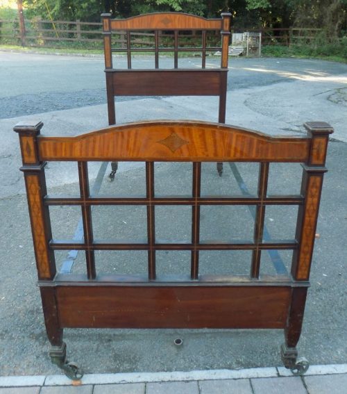 Unrestored Late Victorian Inlaid Walnut Bedstead quantity