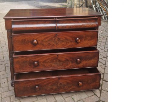 Early Victorian Country House Flame Mahogany Chest of Drawers