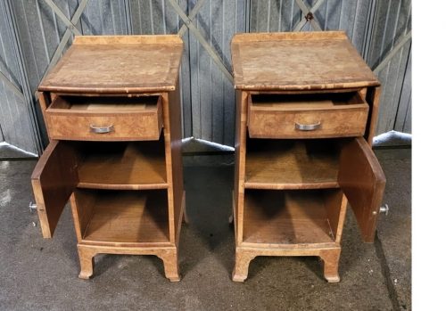 Pair of Art Deco Burr Walnut Bedside Cabinets