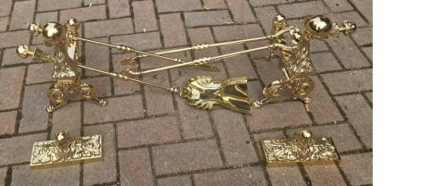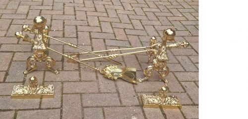 Cast Brass Fire Set