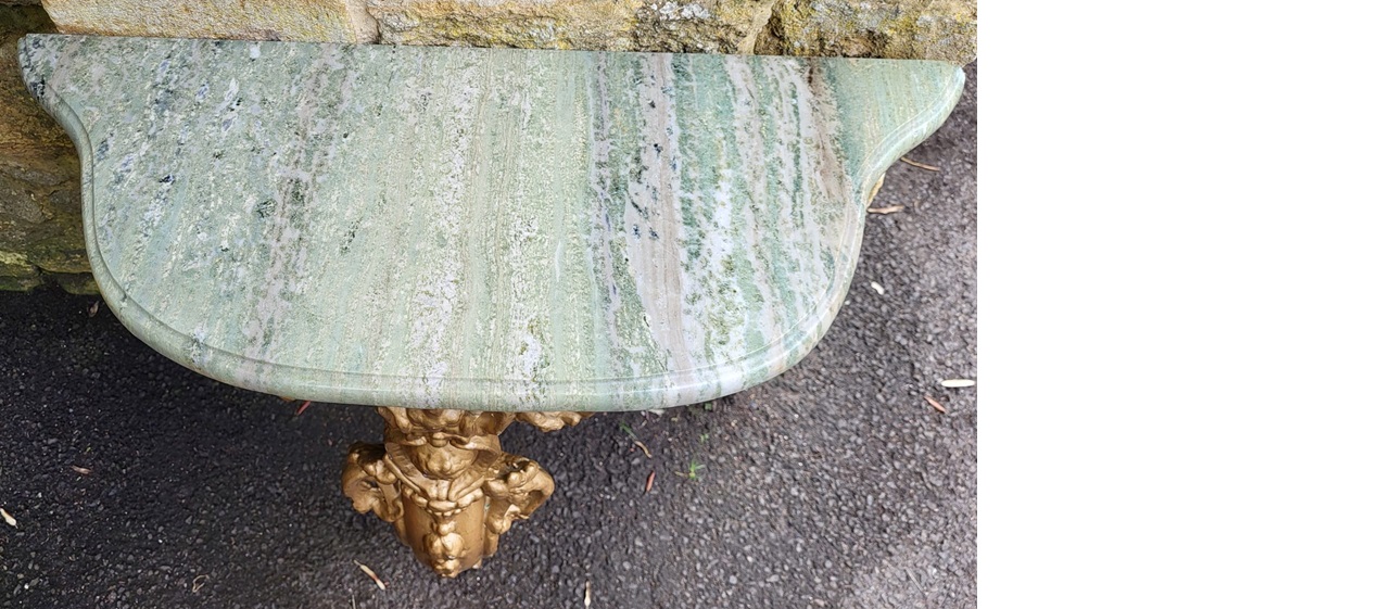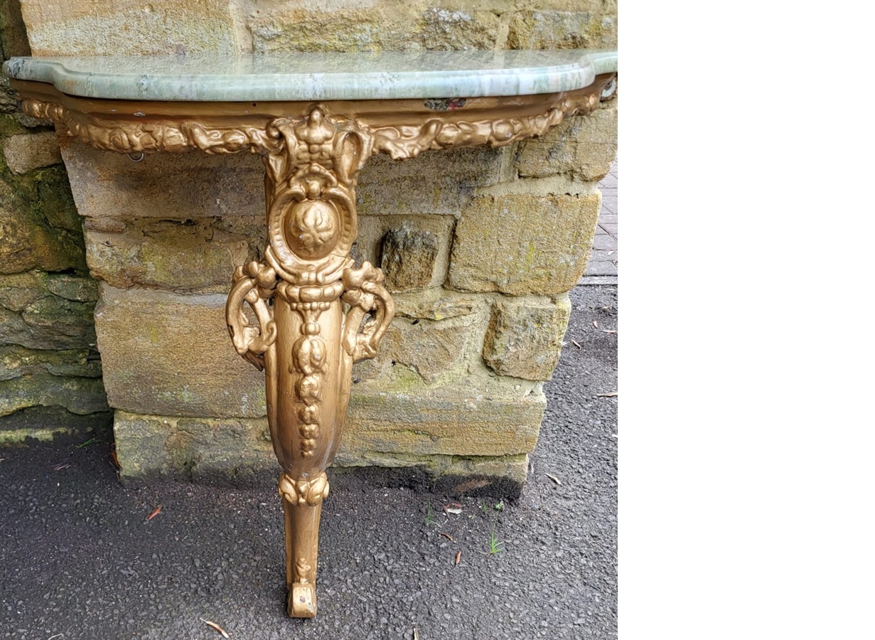 19th Century good carved and gilded marble top console table.