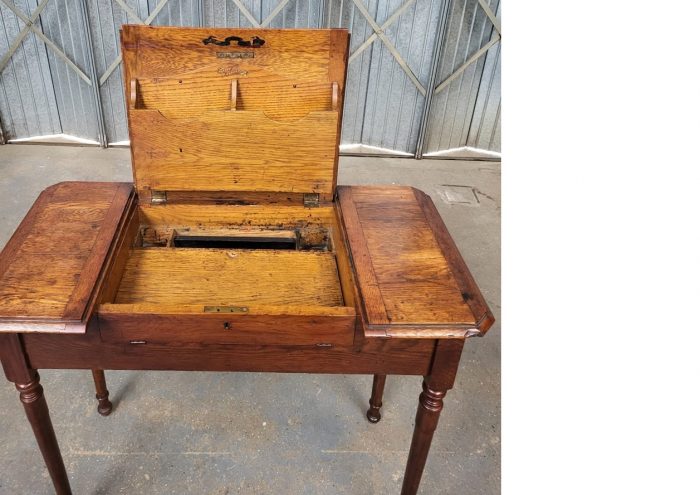 Edwardian “Brittisher Patent ” metamorphic oak desk.