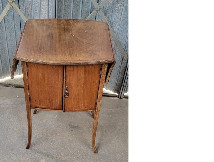 Edwardian inlaid mahogany bedside cabinet with drop flaps.