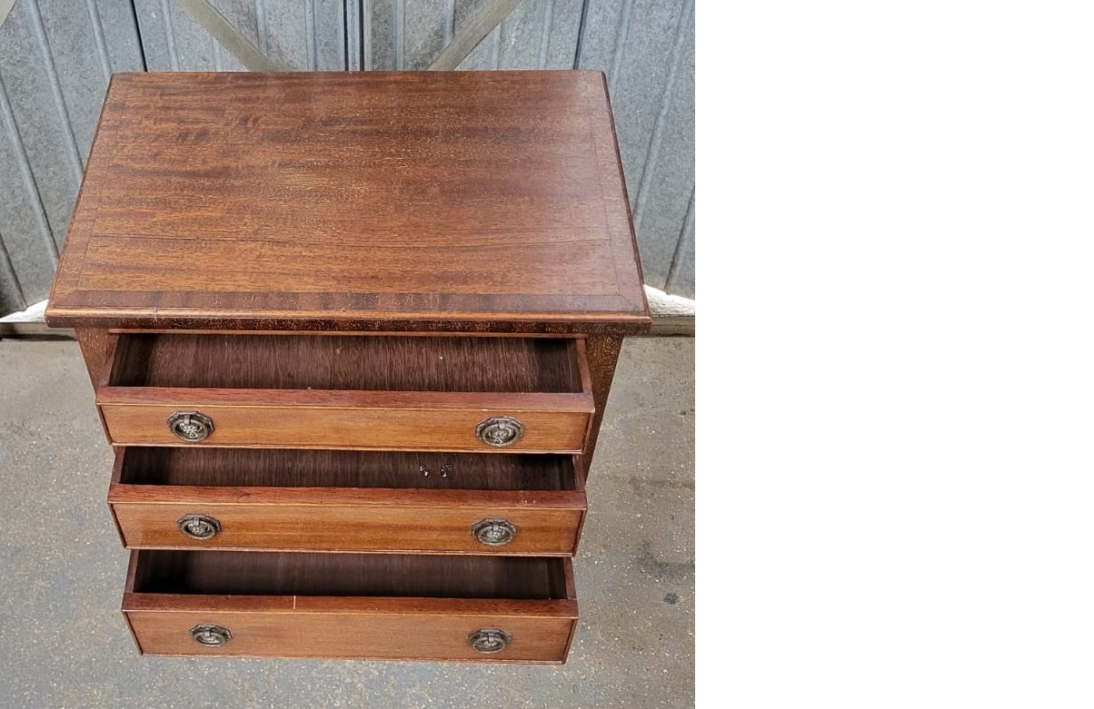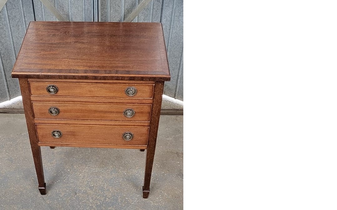Edwardian inlaid mahogany 3 drawer bedside cabinet.