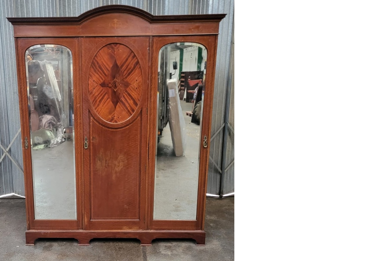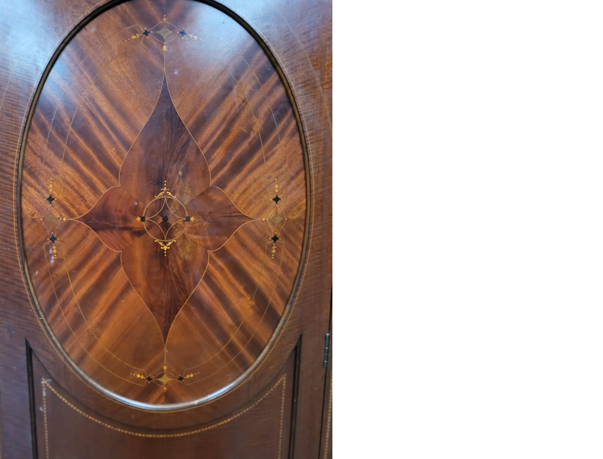 Edwardian inlaid mahogany three door wardrobe with fitted interior by Maple & Co.