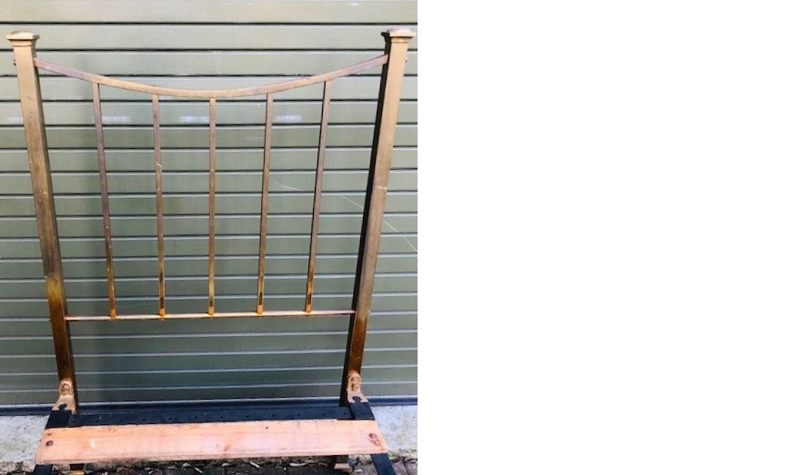 Unrestored 3ft late Victorian square section brass bedstead with brass dipping top rail.