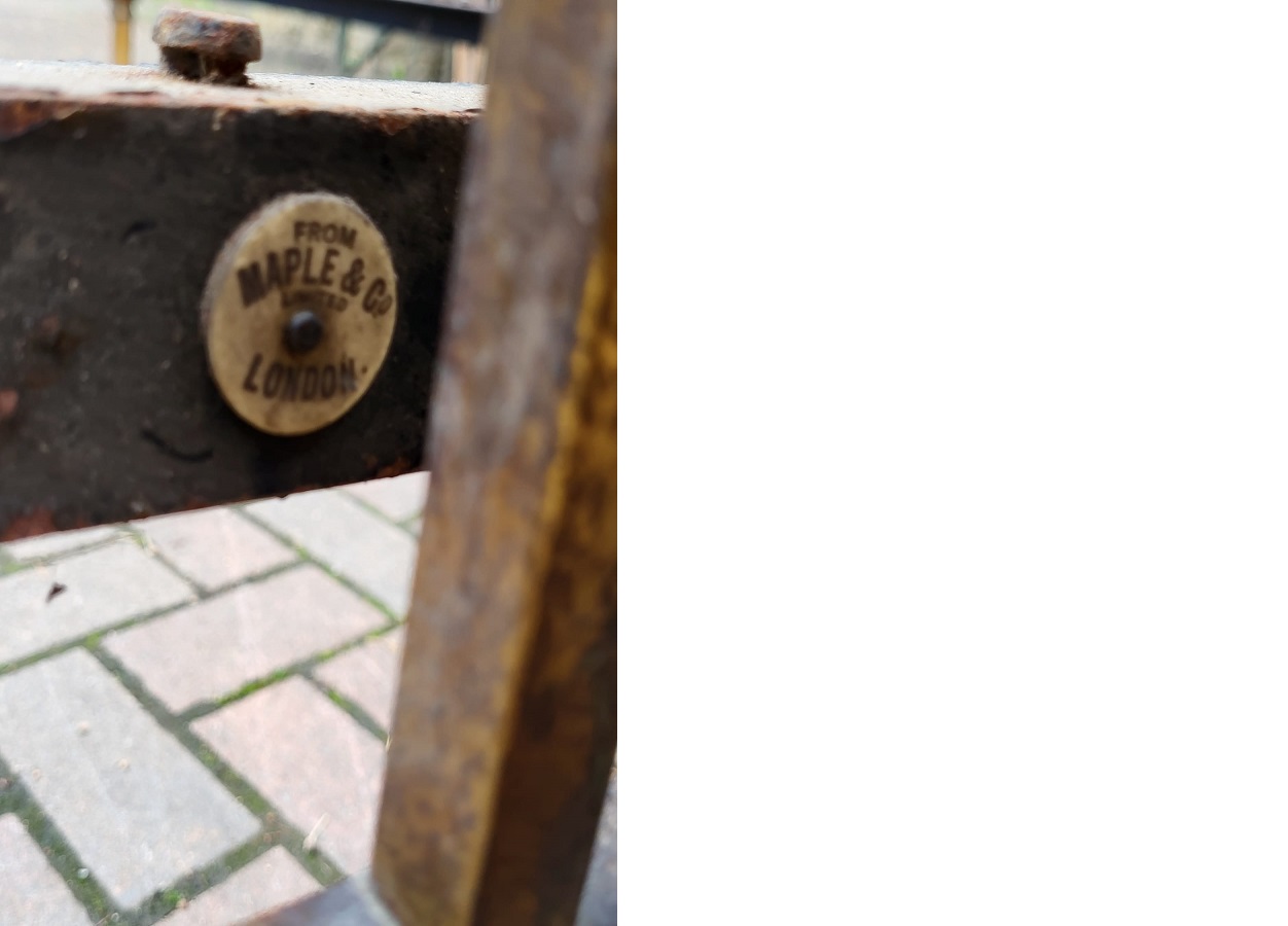 Unrestored good quality king size Victorian square section brass bedstead by Maple & Co.