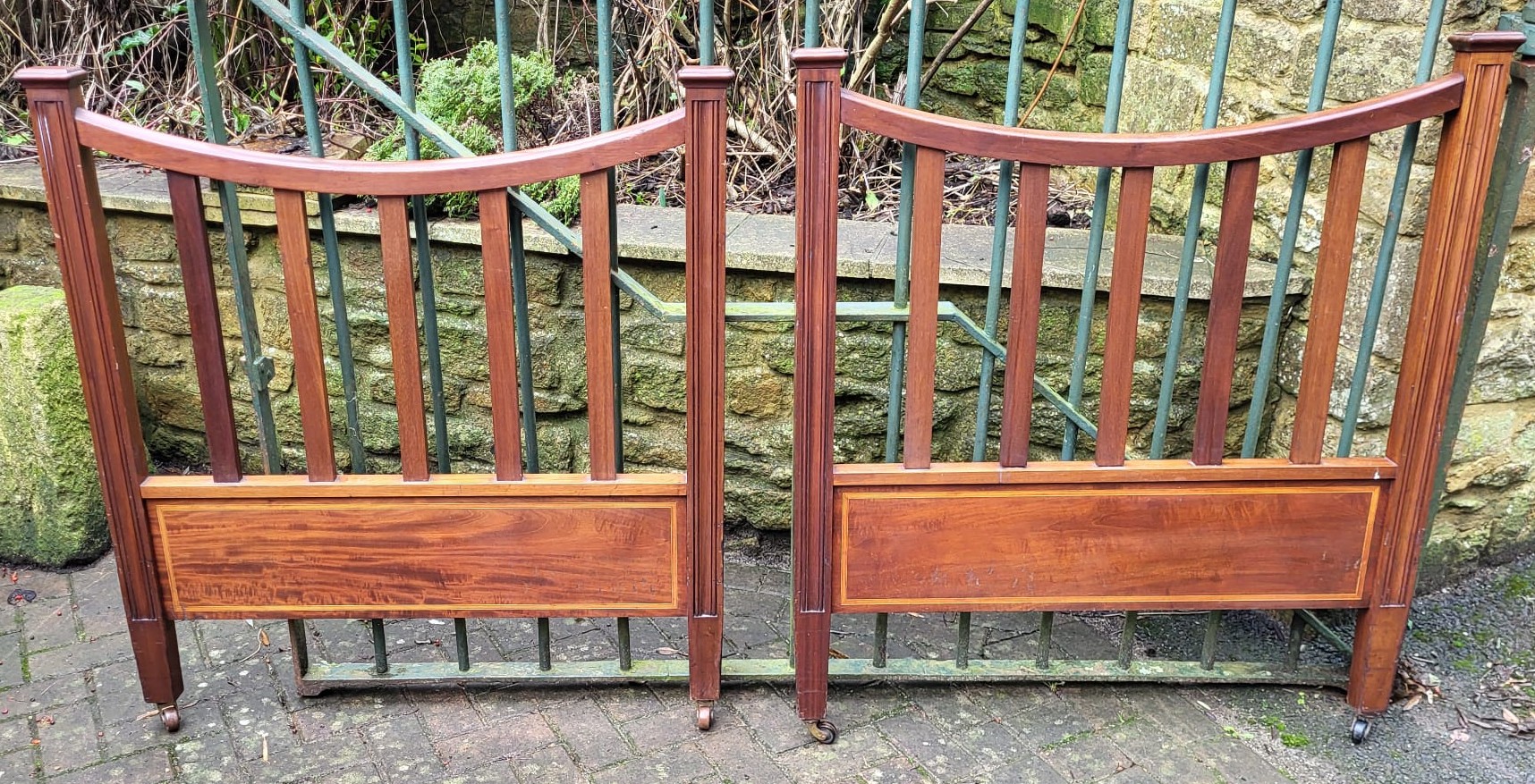 Unrestored pair of 3ft3 Edwardian mahogany headboards.