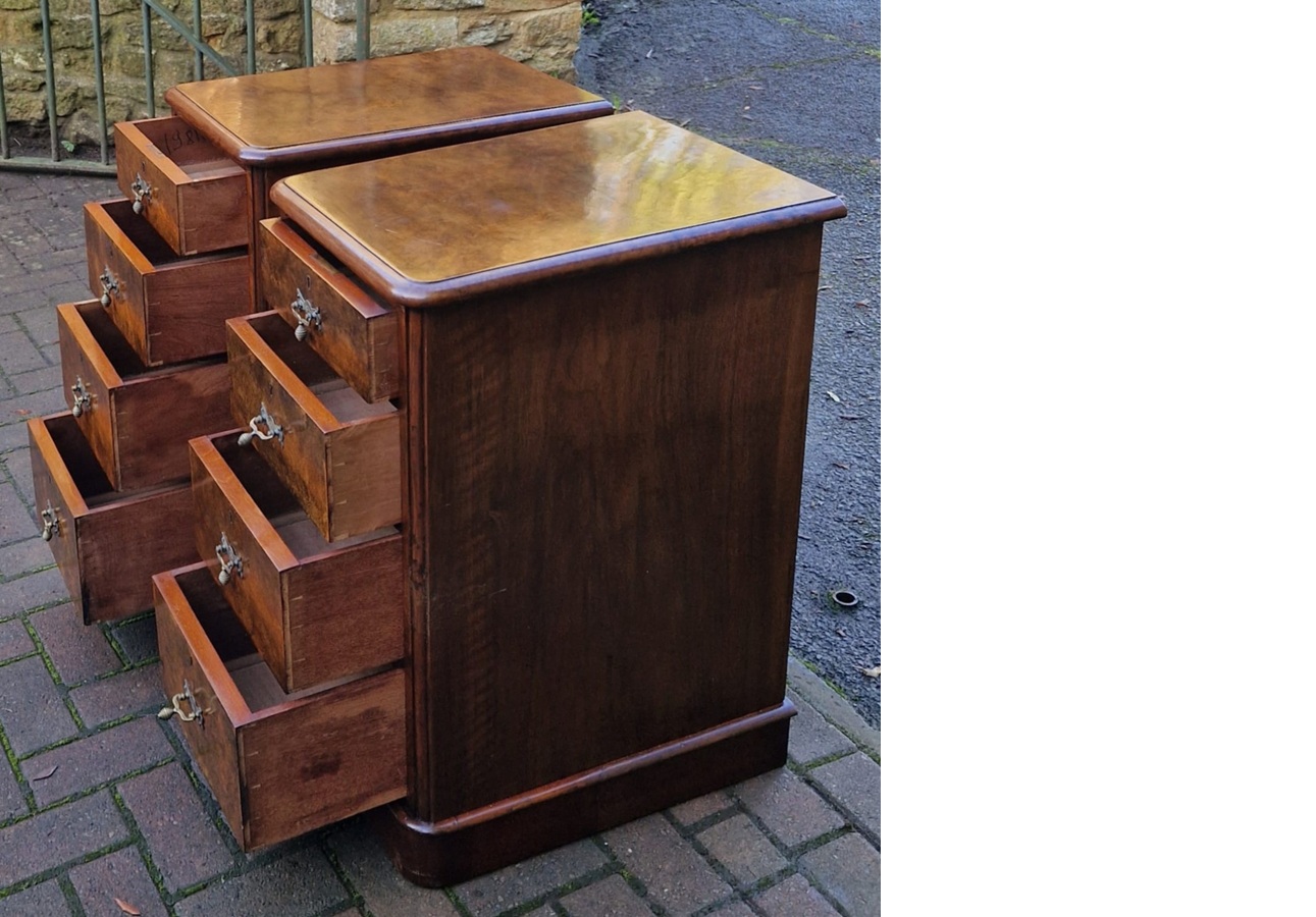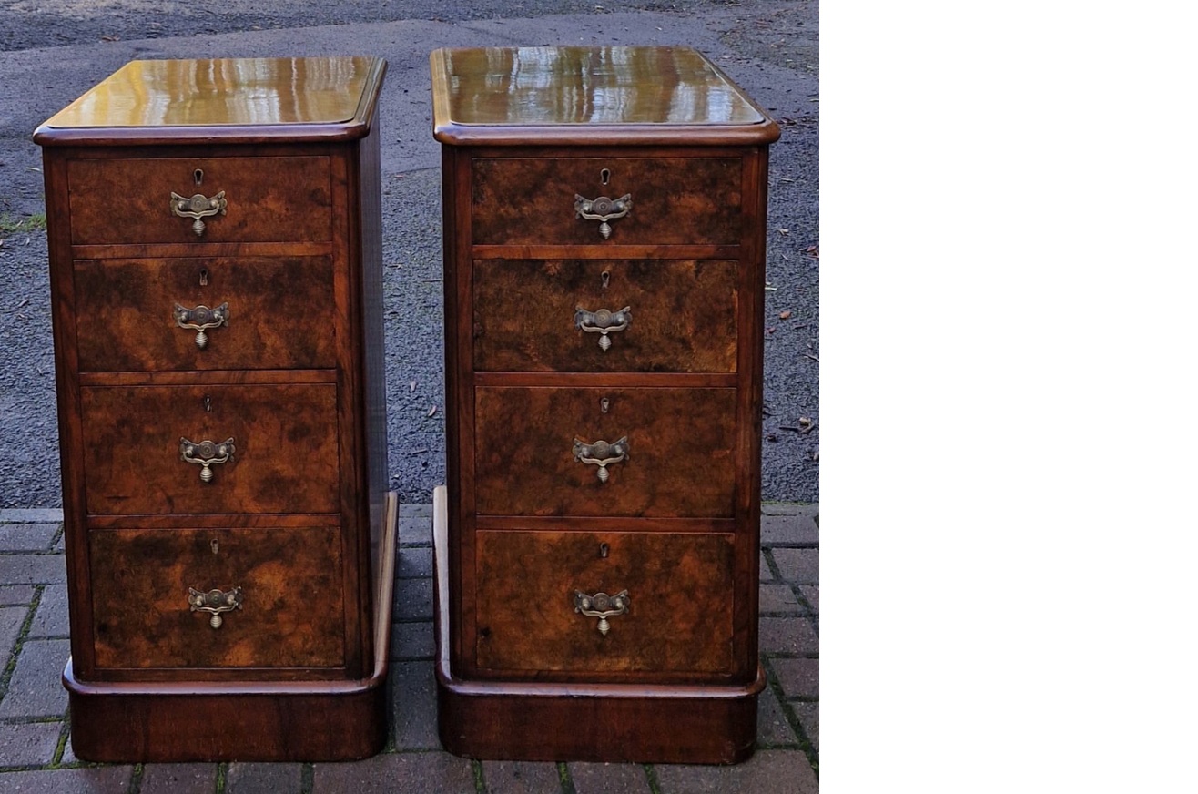 Good pair of restored Victorian burr walnut bedside chests comprising of four drawers per side.