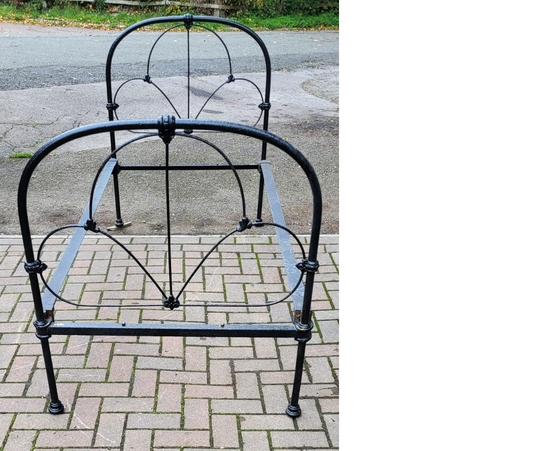 Unrestored 3ft Victorian curly iron cottage bedstead.