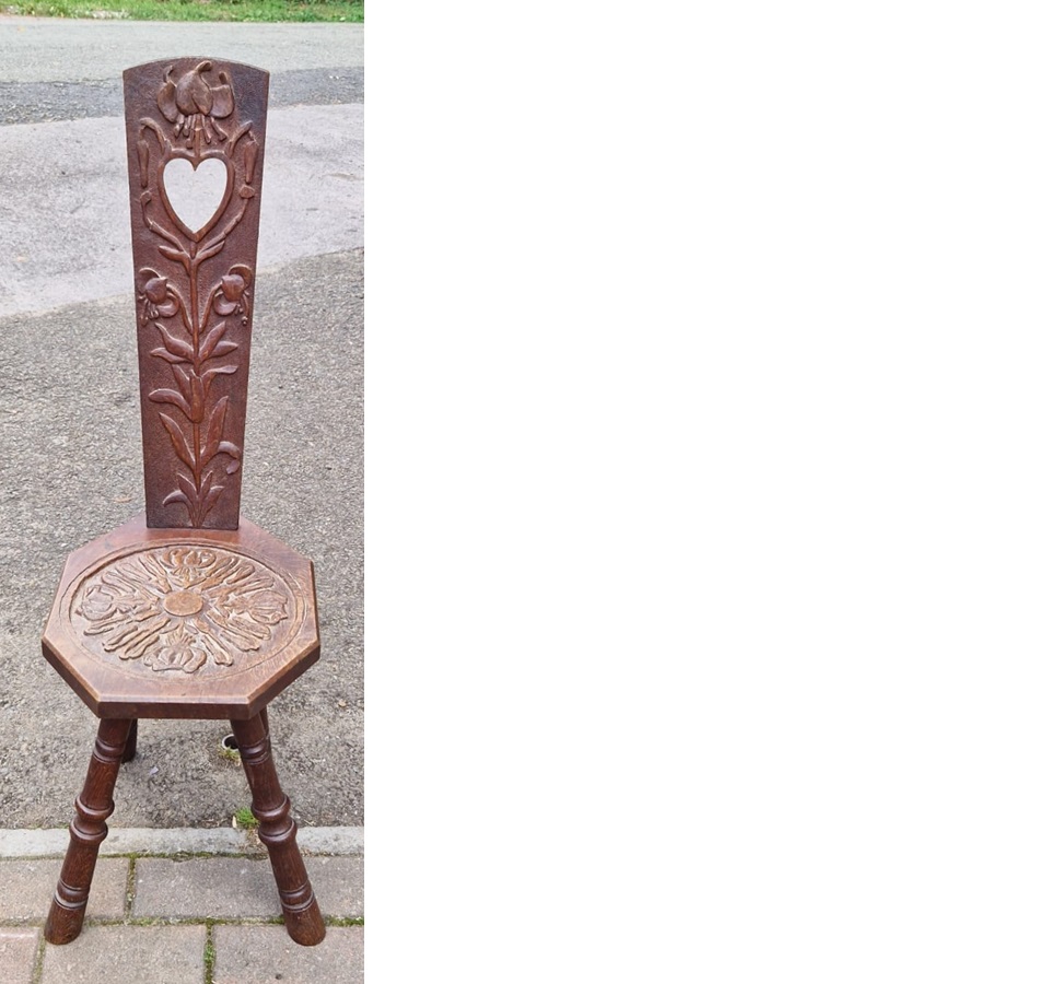 Victorian Welsh carved oak spinning chair.