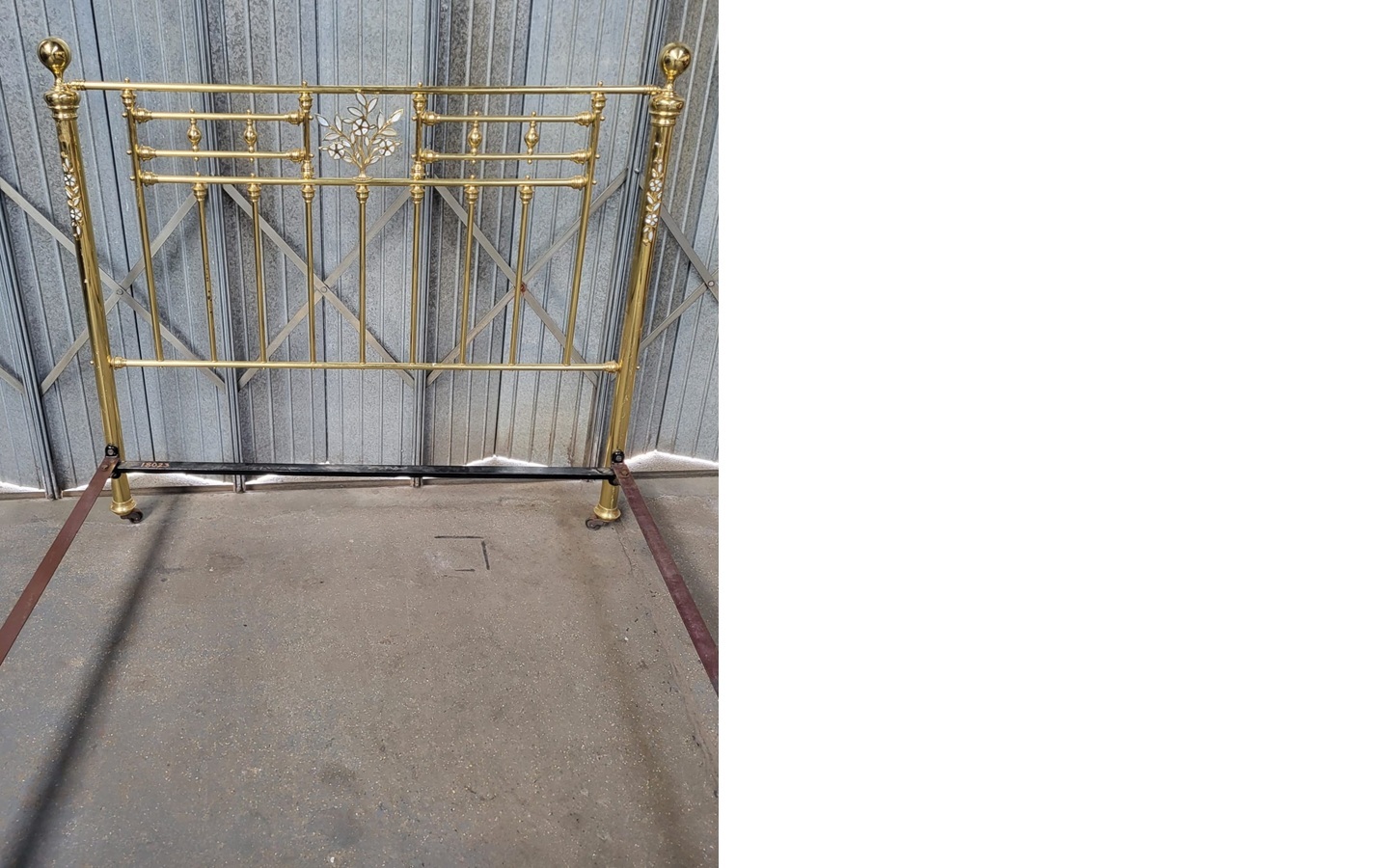 Unrestored 5ft vintage brass bedstead with Mother of Pearl decoration.
